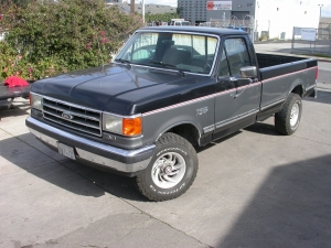 1989 *FORD F150 LARIAT 4WD V8, AUTOMATIC, BLACK/SILVER Exterior with GREY Interior, Stock #9049