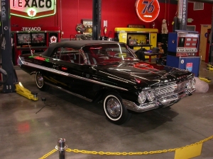 1961 CHEVROLET IMPALA SUPER SPORT CONVERTIBLE 348ci, 4 speed manual, BLACK/WHITE Exterior with RED/WHITE Interior, Stock #9095